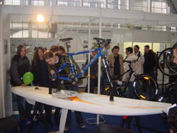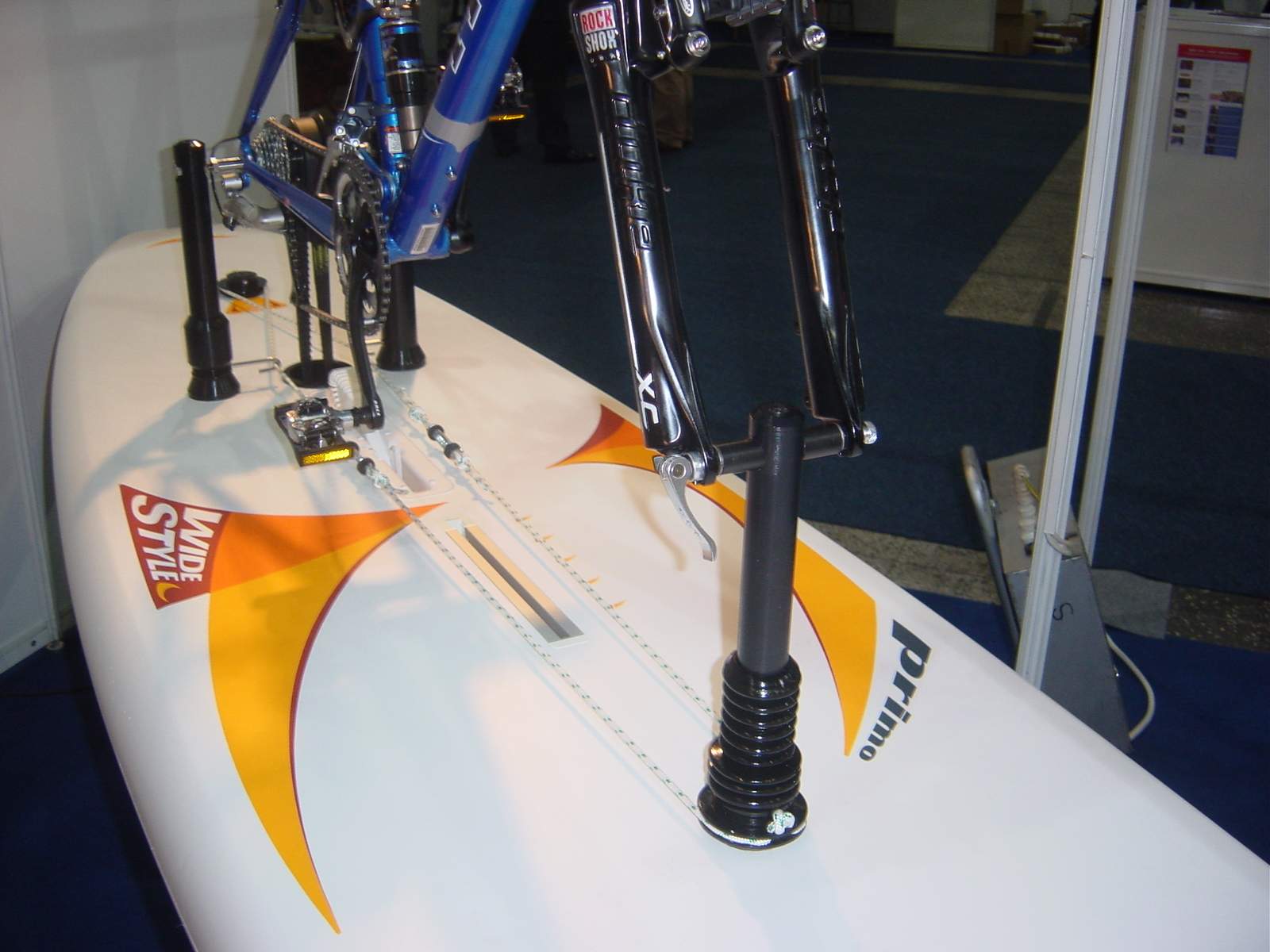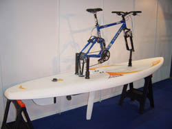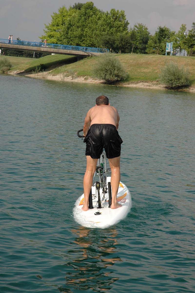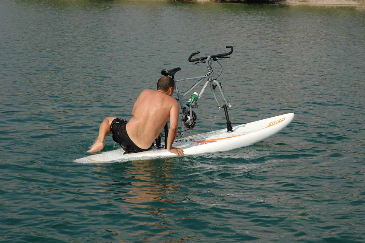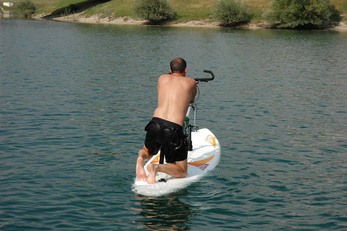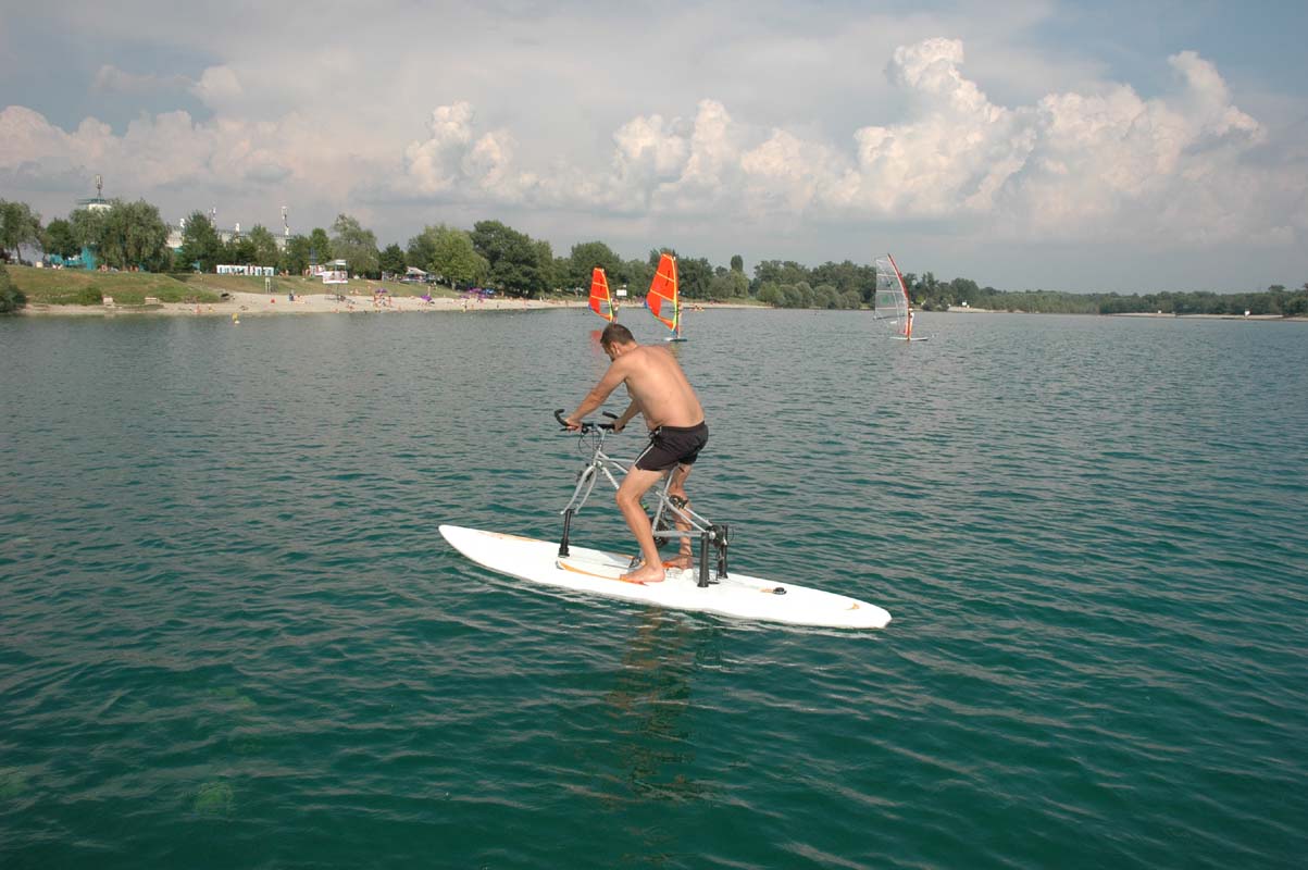Conversion kit on the board Wind surfing board, ready for water cycling