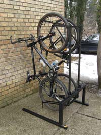 ili držač/nosač bicikla, stabilan je i samostojeći s mogućnošću tiplanja za tlo. Tri mogućnosti osiguranja od krađe bicikla.