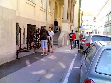 sredinu kolnika (trga), uz stambenu zgradu, na rub kolnika prema